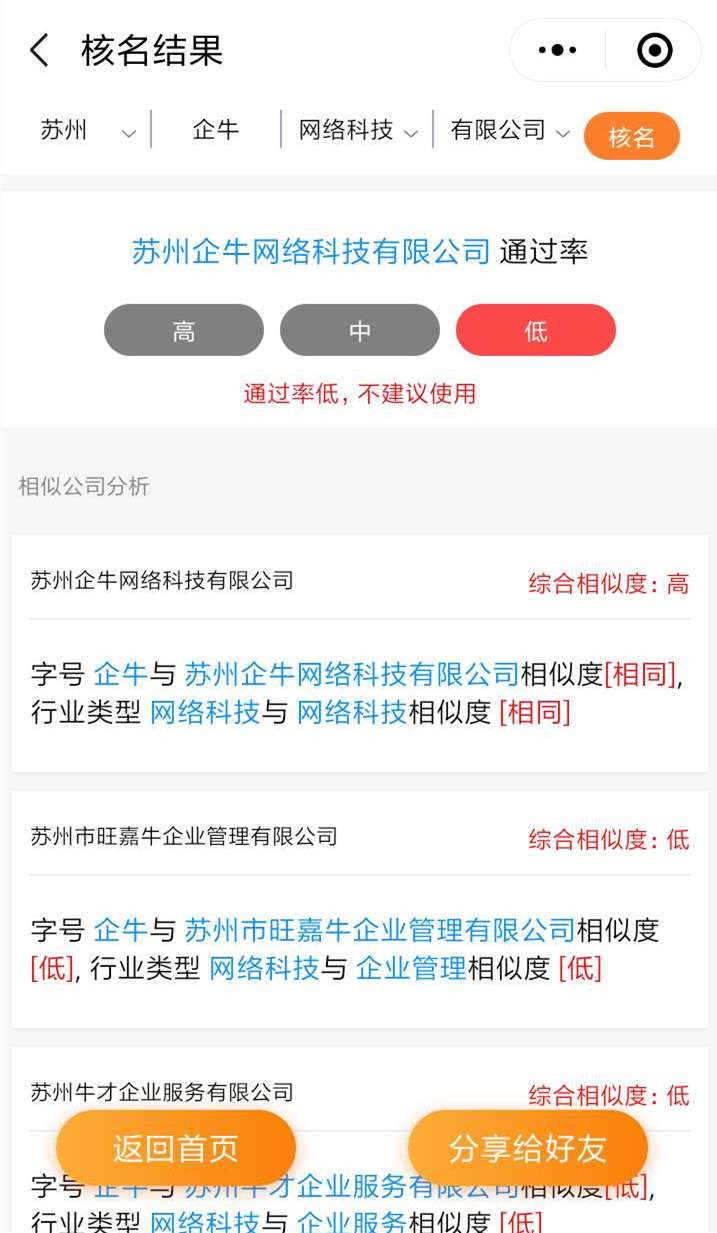 目前网上有很多核名网站,利用这些核名工具,也能很快的查询出一个公司名是否已经被注册,例如:企二哥公司核名系统,以工商大数据为基础研发,公司核名通过率高,一般公司核名通过率高的公司名称,基本上也没有被注册。